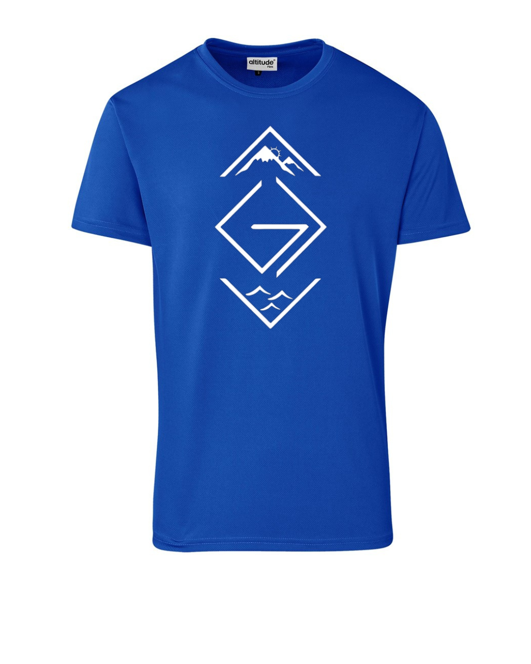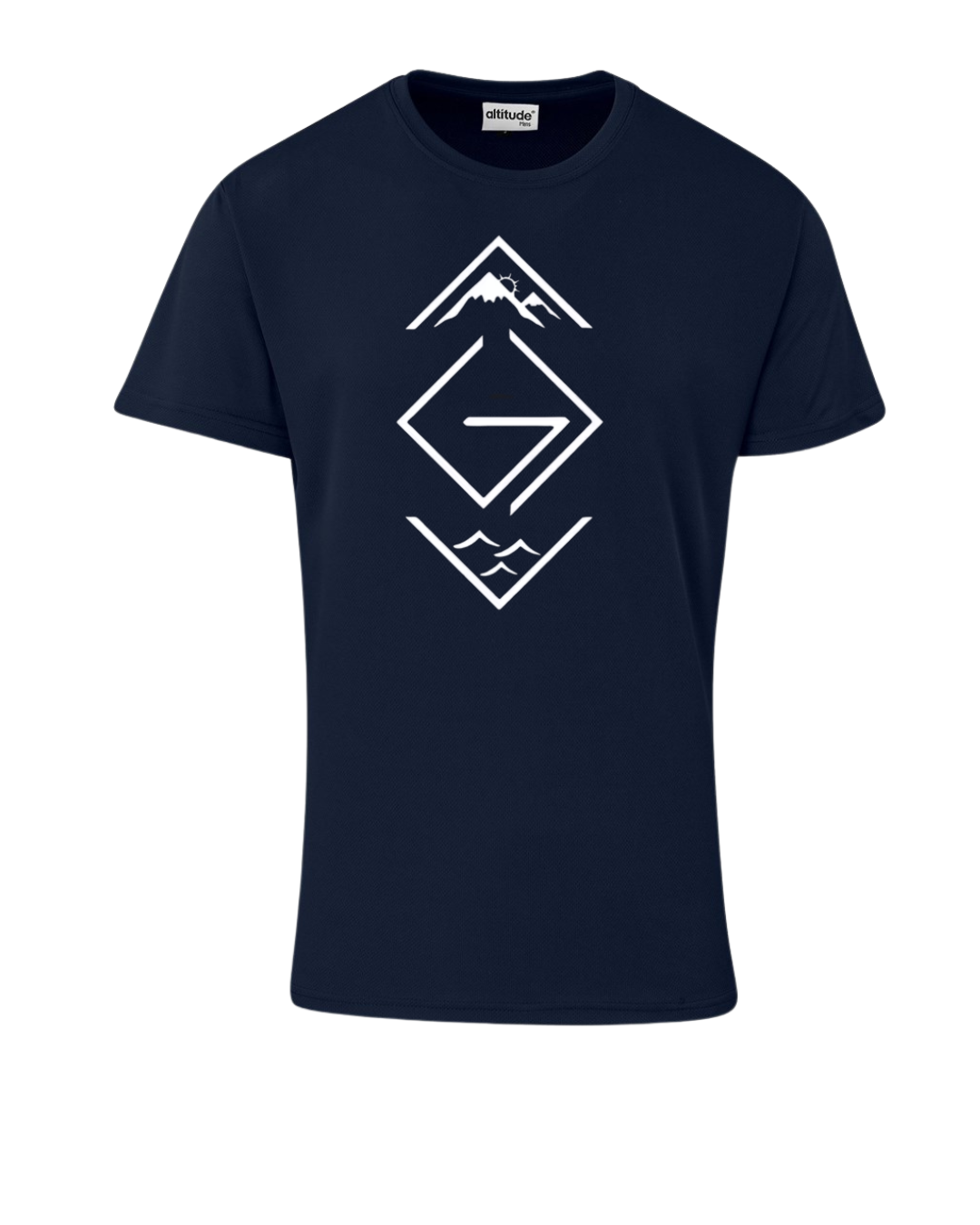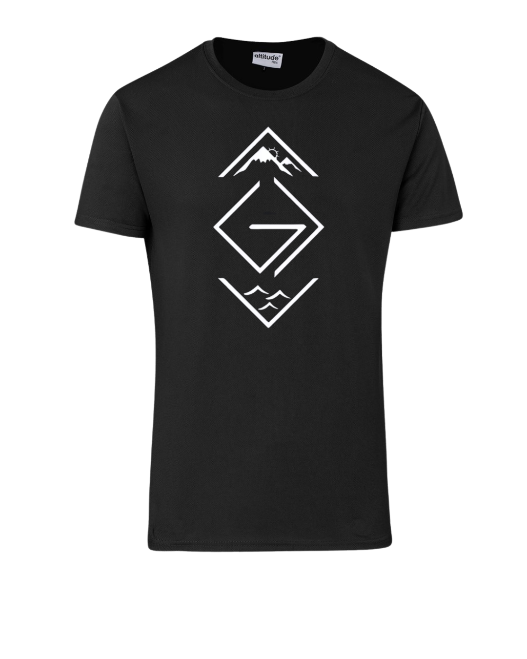 This bold geometric artwork carries a powerful message of faith and direction. The mountain represents spiritual growth and overcoming obstacles. The rising sun symbolises hope and new beginnings. The flowing water reflects living water and renewal. The central “G” stands for God — the foundation, the guide, and the source of strength.