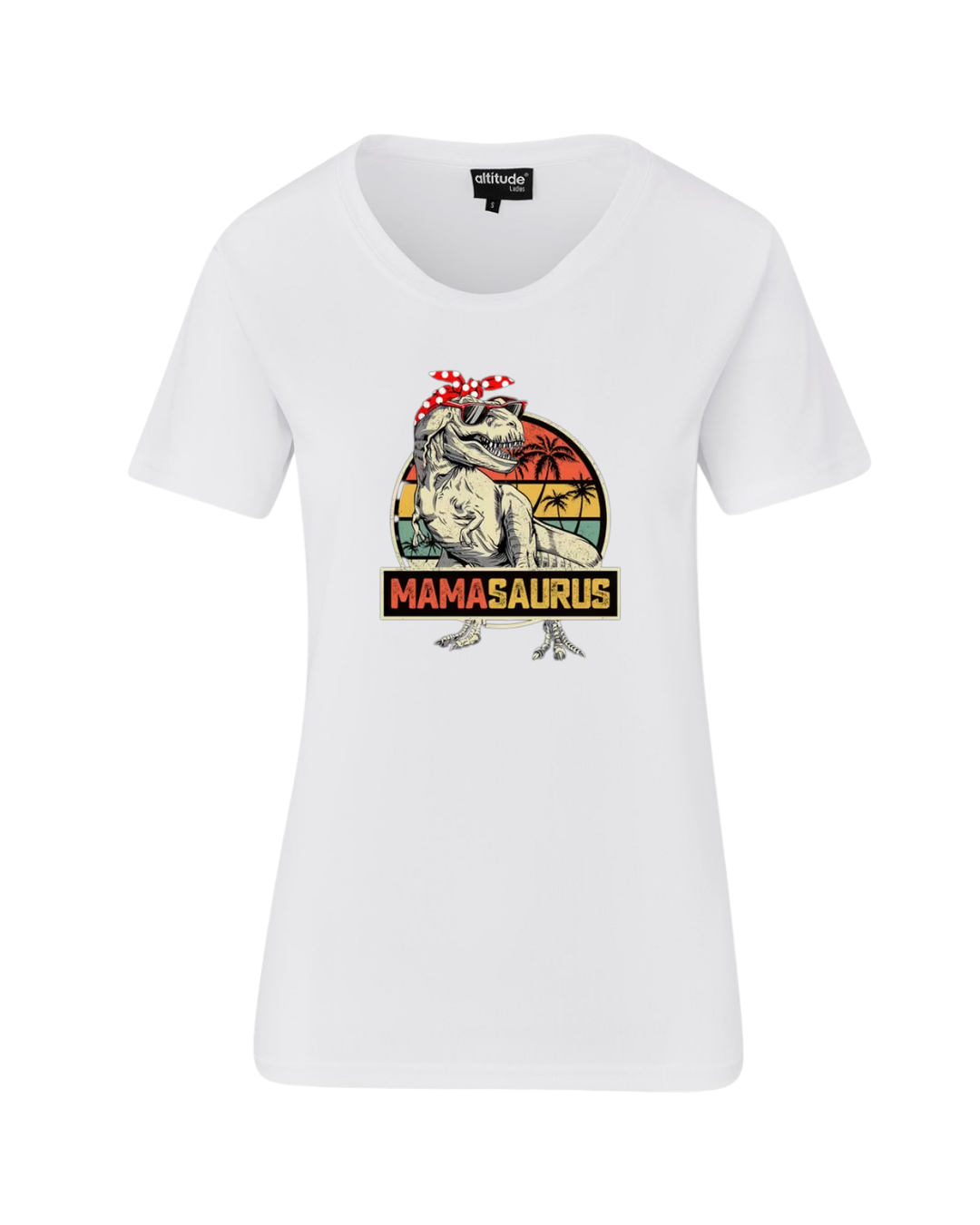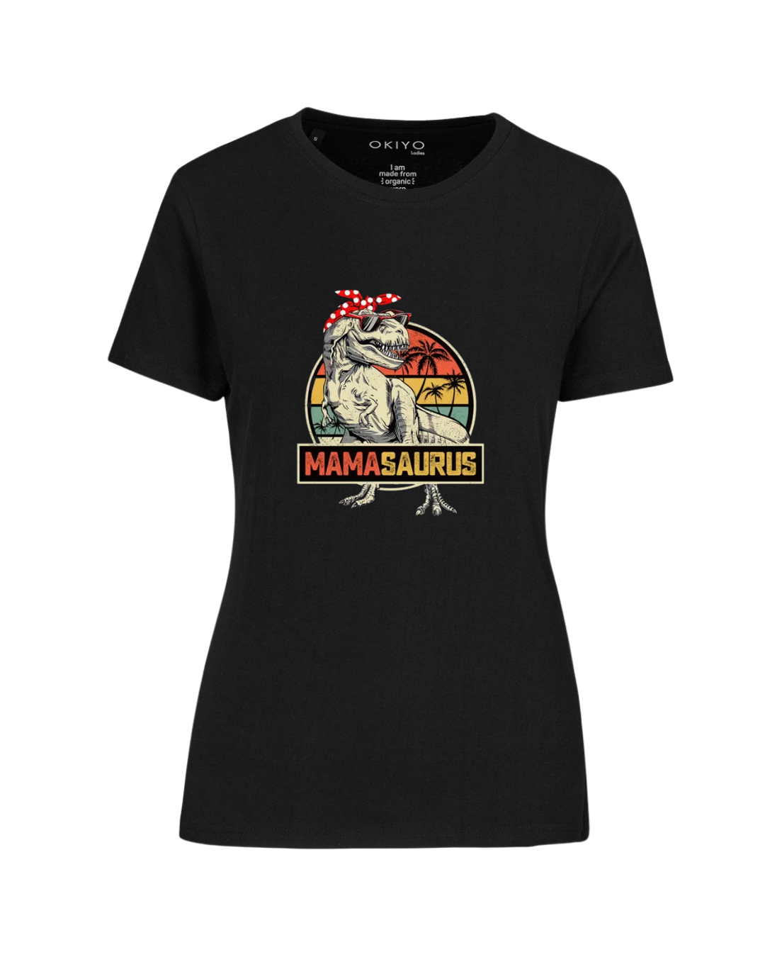 “MAMASAURUS” combines vintage sunset tones with a cool dinosaur graphic — bold, playful, and full of personality.